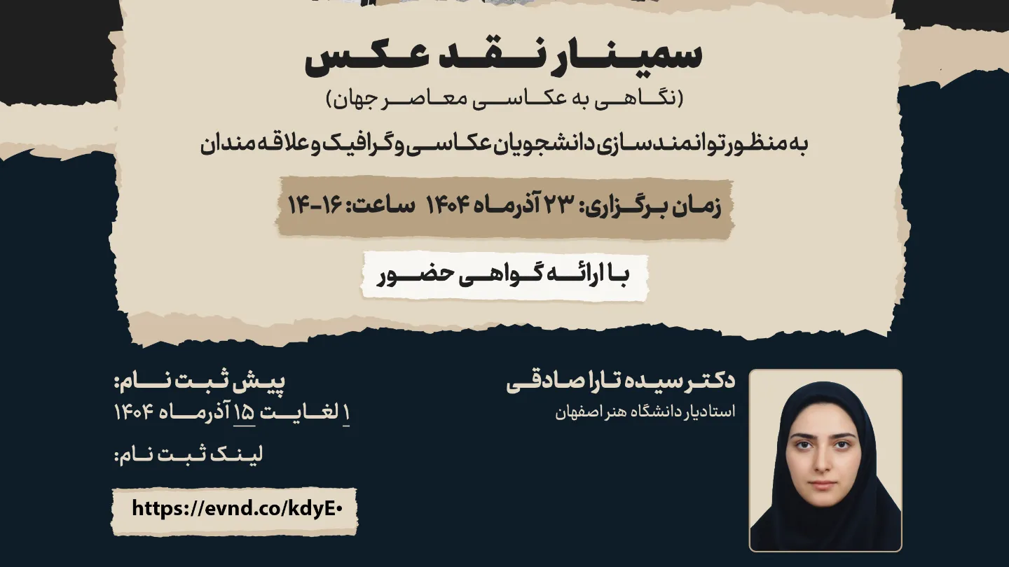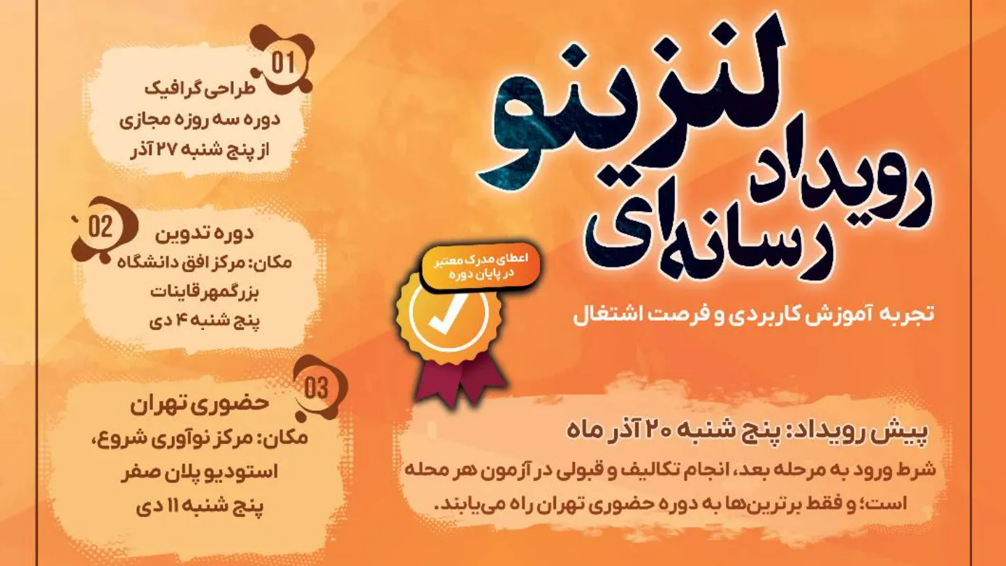 هرچقدر که زندگیهای ما به سمت مدرن شدن پیش میروند، علاقهمان برای فرار از روزمرگیها هم بیشتر میشود. فرهنگ و هنر از دیرباز یکی از راههای فرار و لذت بردن از زندگی و تکتک لحظاتاش بوده و حالا هم هست. از شرکت در رویدادهای فرهنگی هنری لذت ببرید. دسته بندی «رویداد های فرهنگی هنری» ایوند تلاشی است برای اطلاع رسانی بهترین رویداد های حوزه های فرهنگی، هنری و ... تا علاقمندان به این حوزه ها بتوانند با ثبت نام و شرکت در رویداد های مورد علاقه خود، پیش نیاز موفقیت را کسب کنند. سرفصل هایی مانند: آموزش گرافیک، طراحی و نقاشی، فیلم و سینما، موسیقی و آواز، شعر و ادبیات، تئاتر، ساخت انیمیشن، طراحی مد و لباس، طراحی مد و لباس، داستان نویسی، کتاب خوانی، خوش نویسی و خطاطی، صنایع دستی، آموزش گویندگی و اجرا، آموزش عکاسی و ... ، از جمله موضوعاتی هستند که در دوره ها، کنفرانس ها، سمینارها و کارگاه های مختلف این حوزه مطرح می شوند.